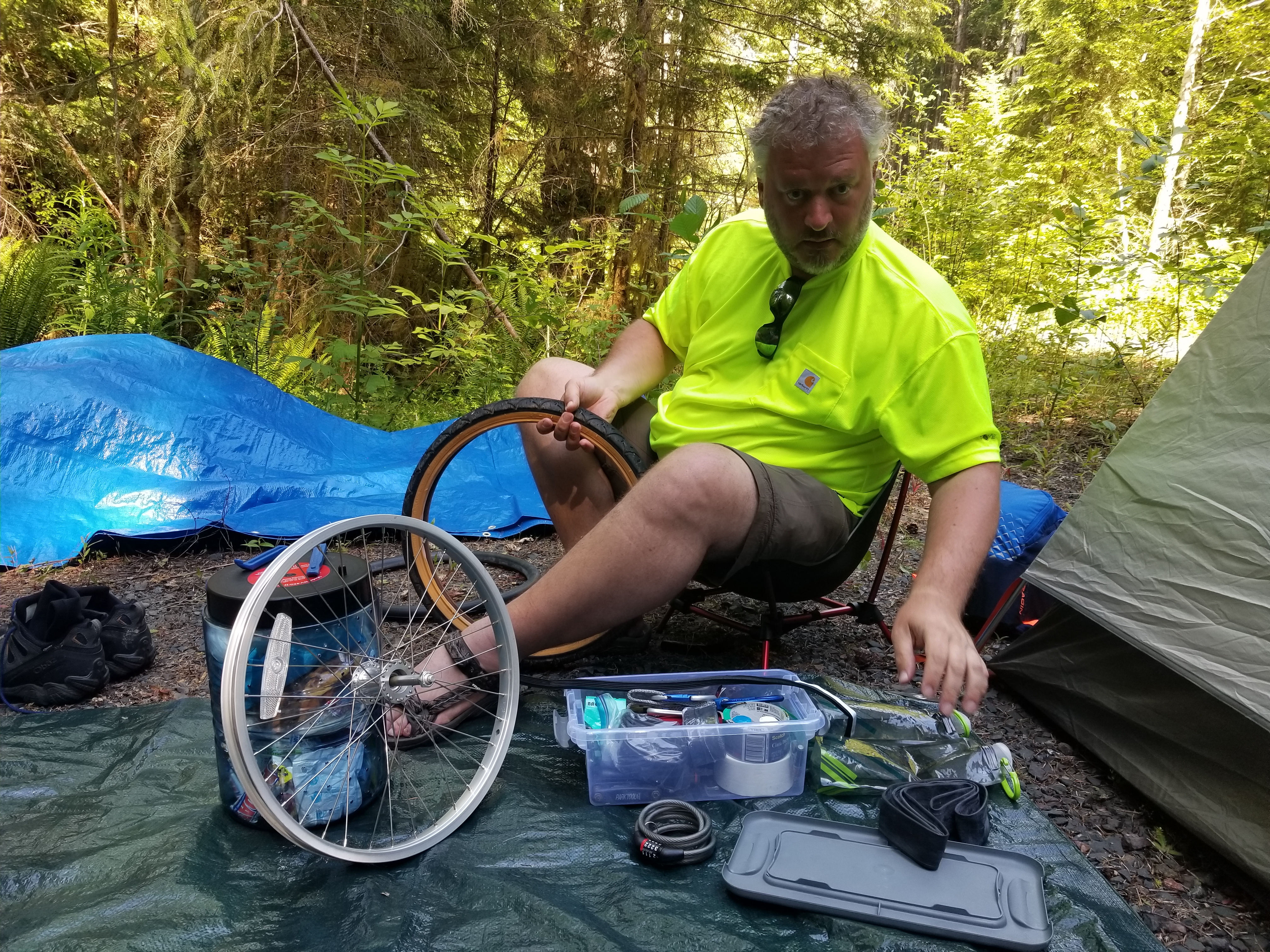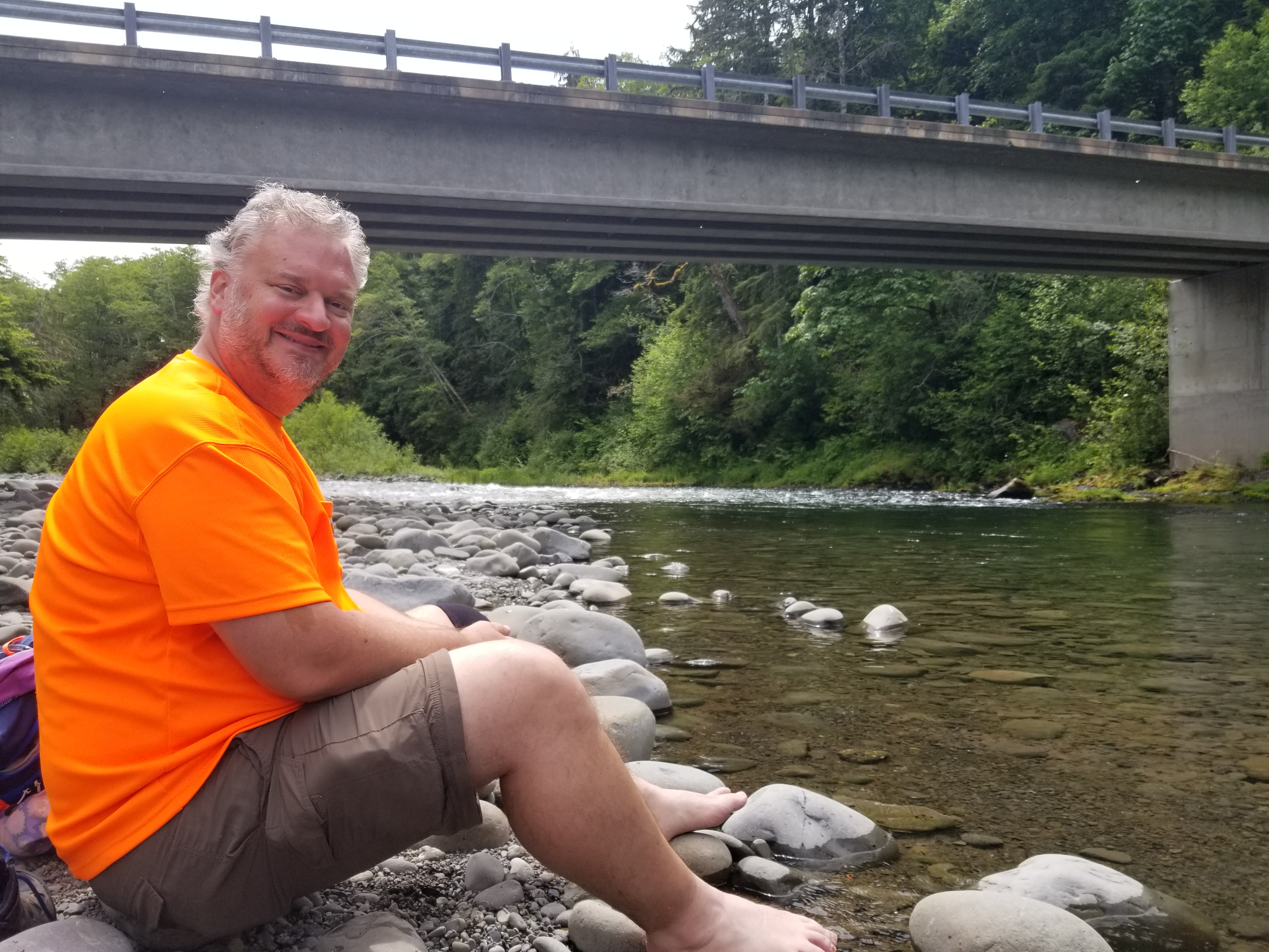 Yesterday, we chose to walk a short, easy day and rough camp one more night in the shade of the Olympic National Forest. It was my first opportunity to pull the cart. I pulled through towering old growth forest, down logging roads, and across a bridge over the Sol Duc. We filled our water reservoirs and soaked our feet in the river’s icy water. I tried to talk Rod into a swim but he wasn’t having it with the glacial temperature. We learned about caddisflies, a genus of flying insects that larvate in water and build bespoke little suits from pine needles and other tree debris. We stopped early, with the sun still high in the sky, made camp trailside, and sluiced the sweat off with water still cold from the Sol Duc river. Rod changed a slowly leaking tire, and we simply enjoyed the forest until the sun set.