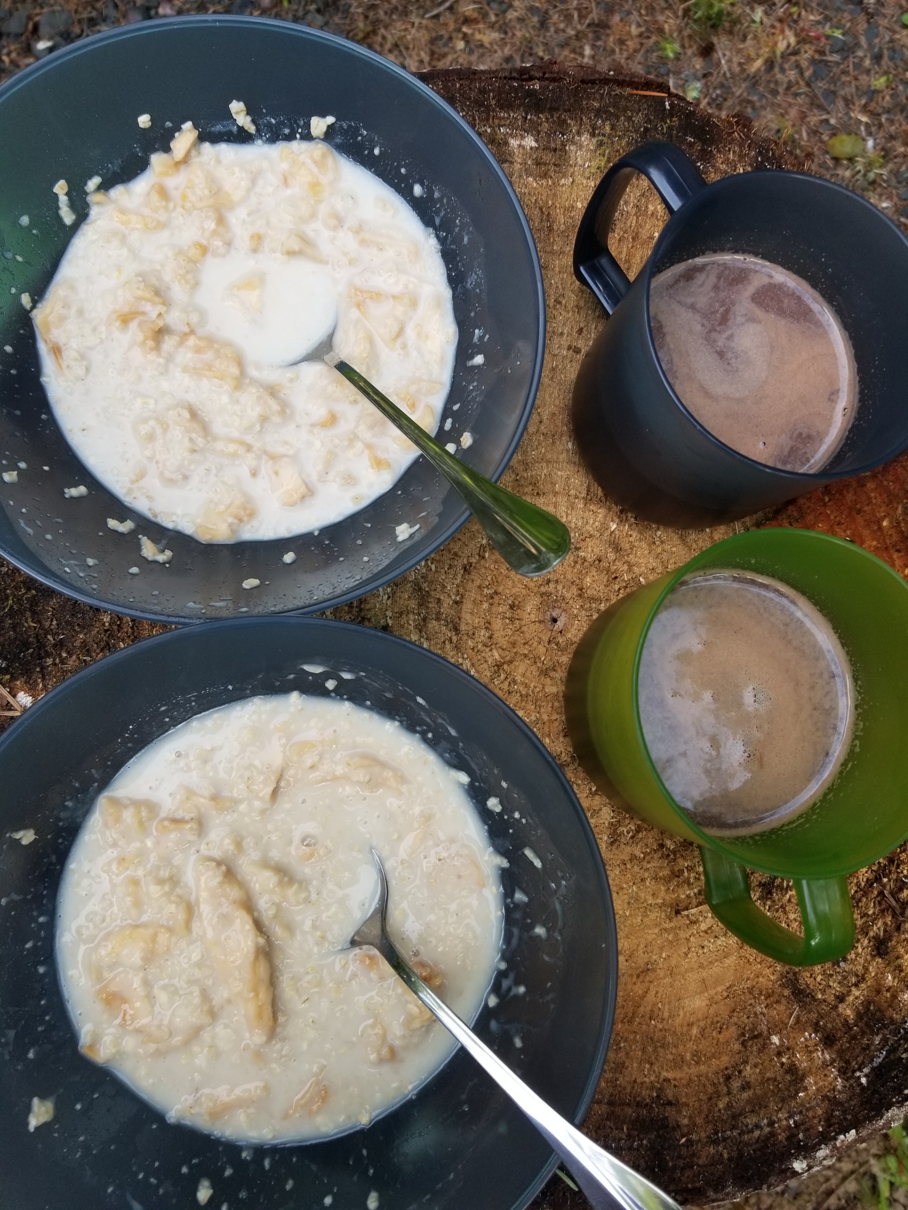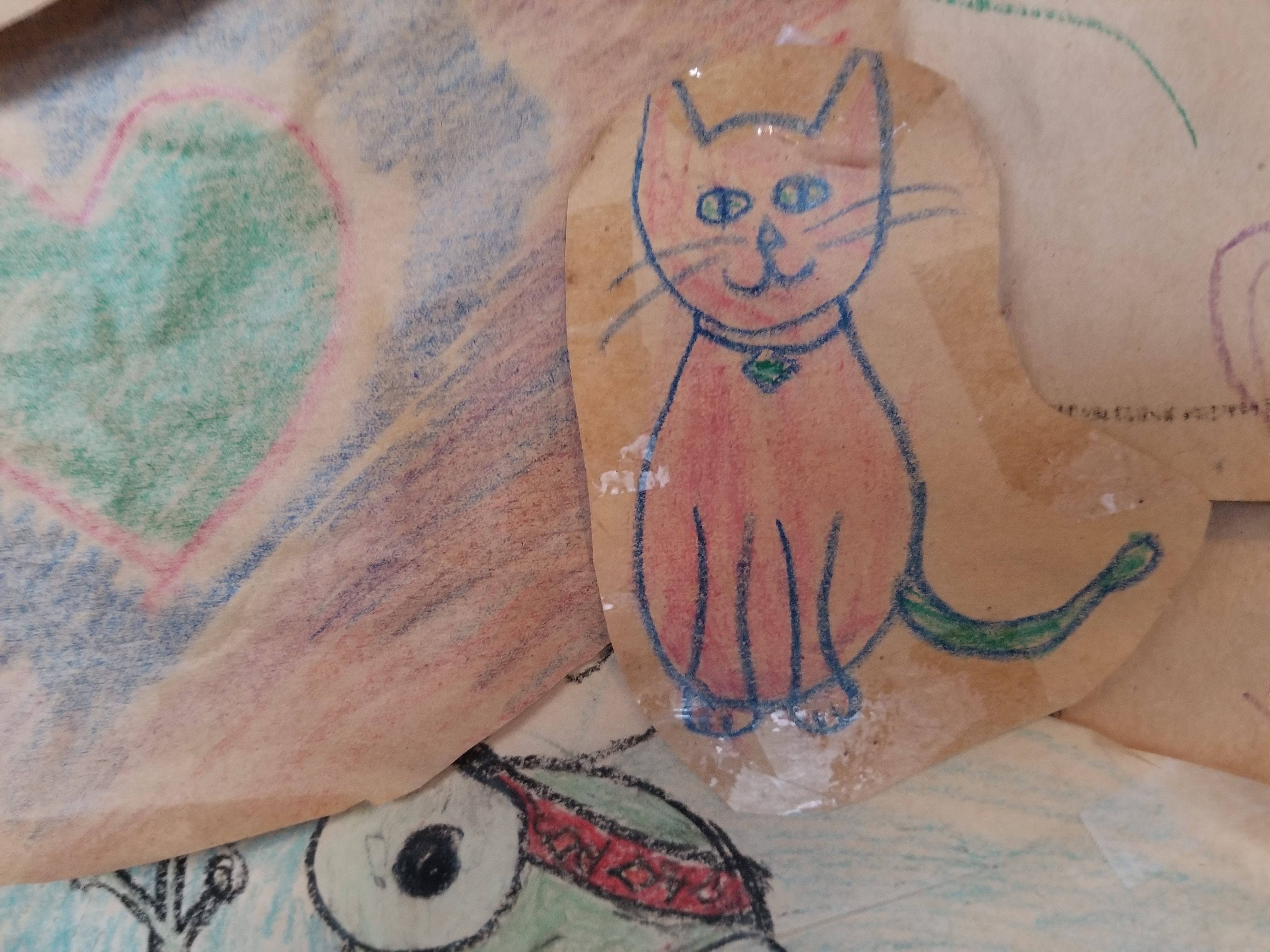 At 6 pm and 18.2 miles, we arrived at the Crescent Lake Log Cabin Resort in pain and exhausted. At the desk, we were greeted by a collage of crayon drawings by previous guests, and I was surprised to find amongst them a drawing of my own: a cat I had scribbled as a child vacationing here with my family decades ago. I don’t remember the cat specifically, but I remember drawing at dinner, and she is unmistakably mine, right down to the crook in her tail I make to this day in my rush to finish. After check-in, we showered as if it might be our last, and ate dinner outside, eyeing the tiny droplets of rain with a mix of skepticism and resignation, knowing tomorrow will bring it’s own challenges.