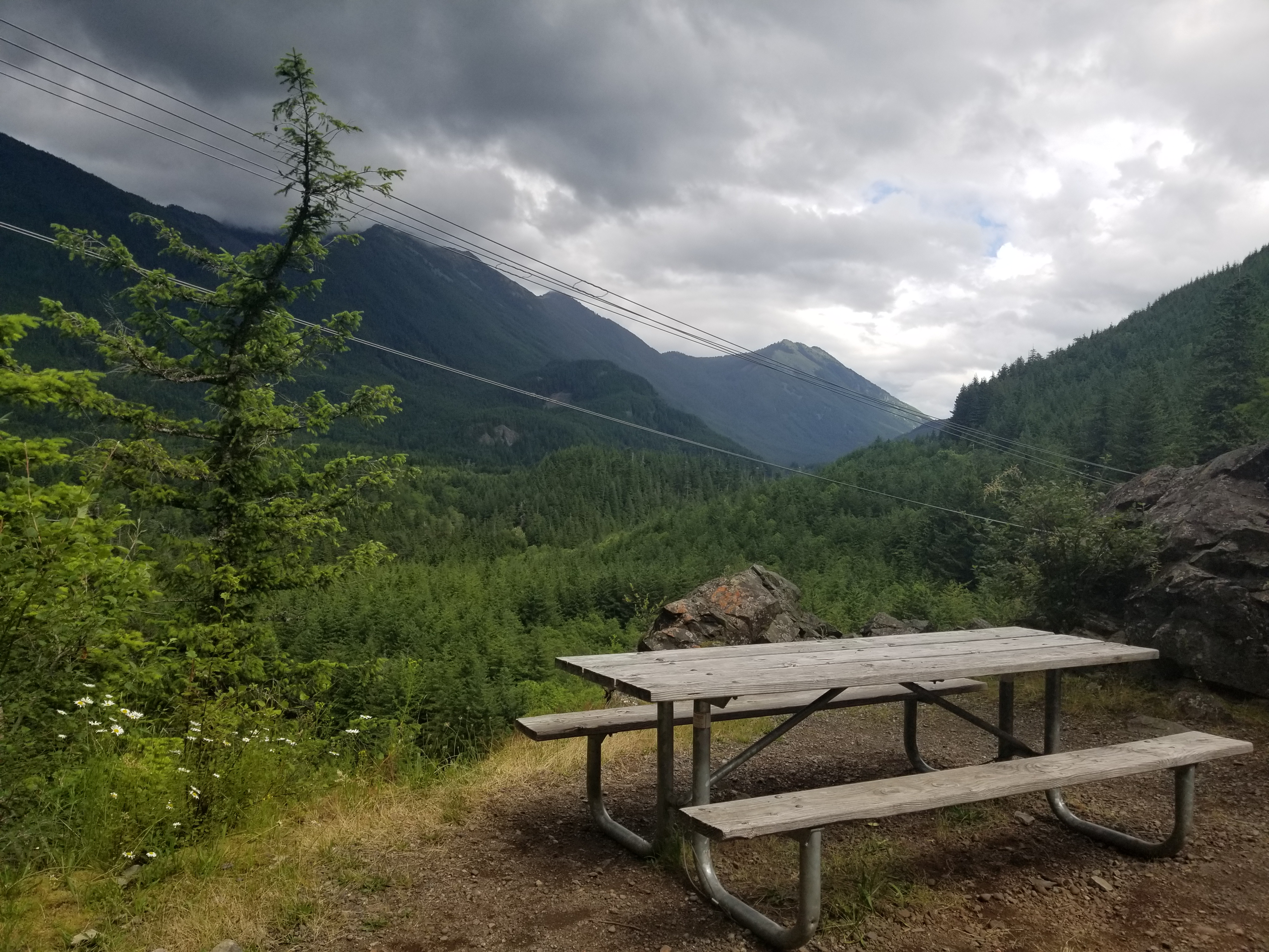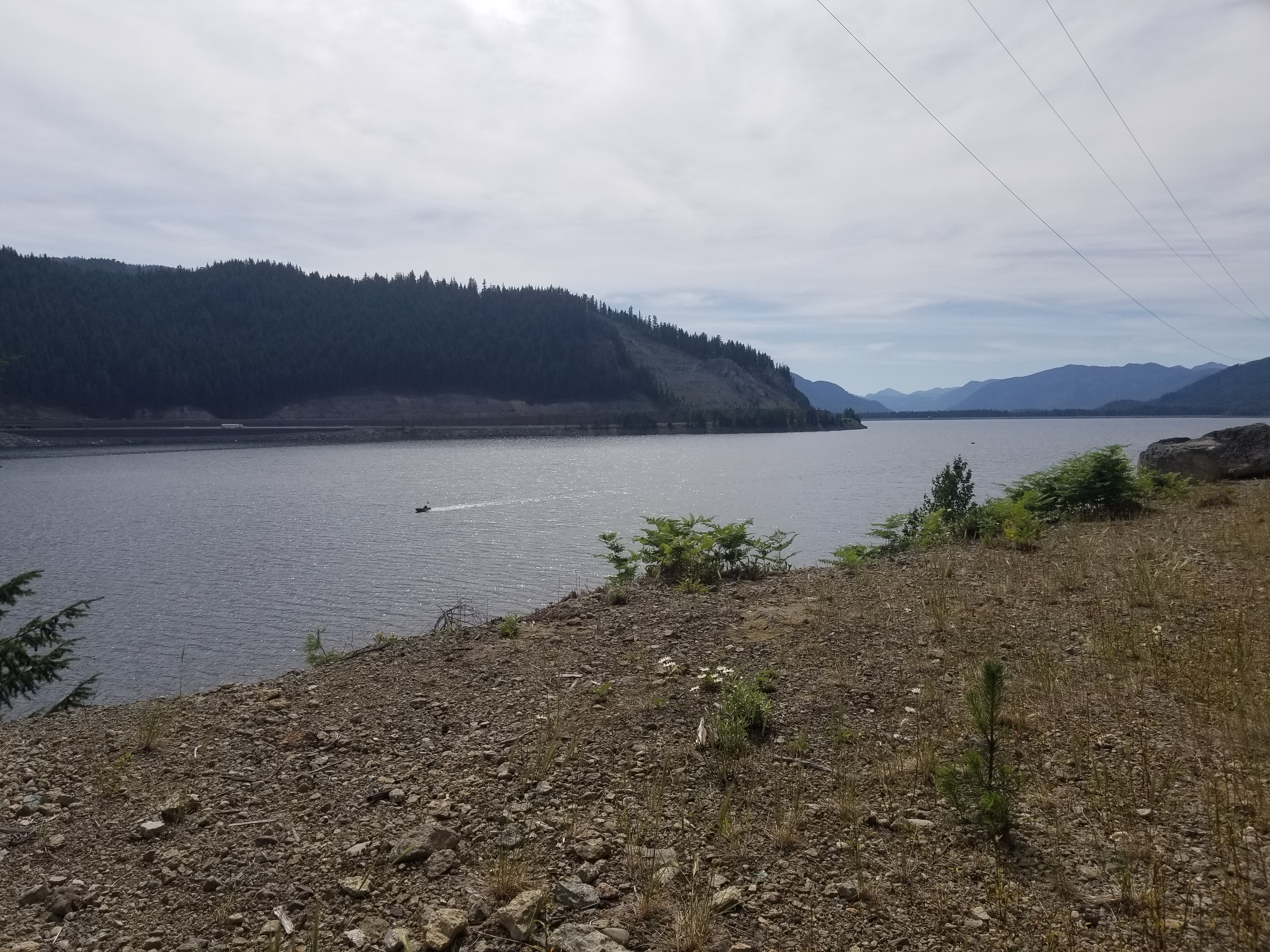 The trail here is the Iron Horse Trail, a converted rail-trail made from the last stretch of the old Milwaukee Road railway line. It’s wide and shallowly gaveled, with only a 2% grade, making for an easy walk. Converted rail trestles carry me easily over steep river and stream valleys, and each one feels like both cheating and triumph. I-90 hums across the lake, but it’s far enough away to fade into the background. There are even “primitive” campsites on the trail with vault toilets, tent pads, and picnic tables. Between the trail amenities and Rod’s trailside support, summiting the cascade range felt entirely too easy– like just a stroll up a hill. I’m sure the challenges of the Eastern Washington’s plains and desert will make up for it though, and that’s just a few days ahead now. Best to enjoy the mild mountain weather and little luxuries while I can.